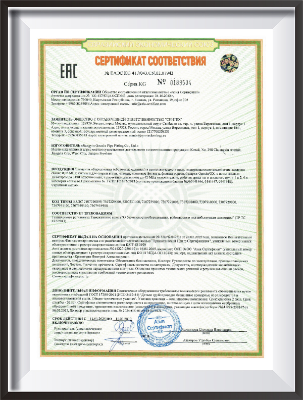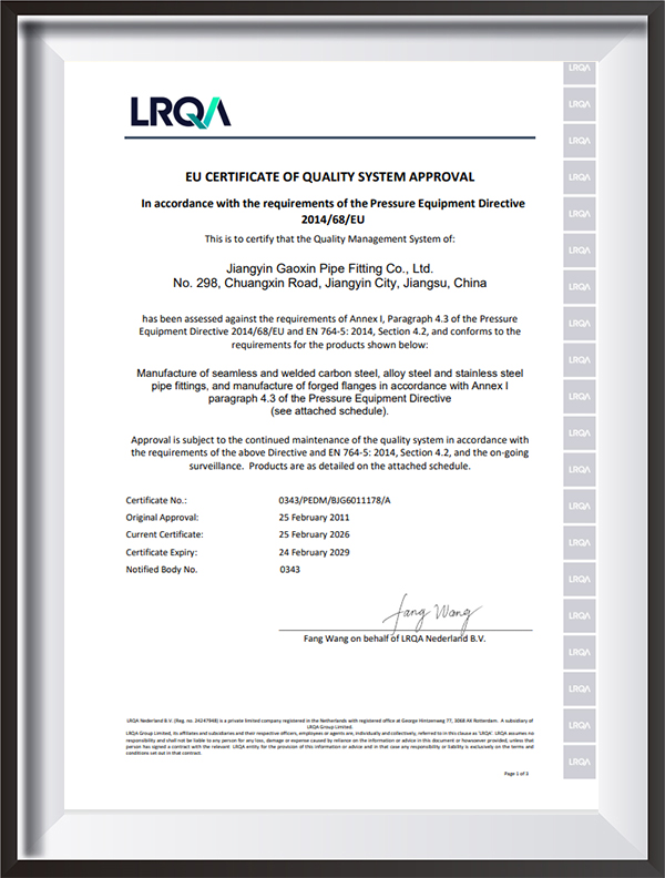 | Sertipiko | PED, AD2000, EAC, ABS, BV, DNV, NORSOK M650, ISO9001, ISO14001, ISO45001, atbp. |